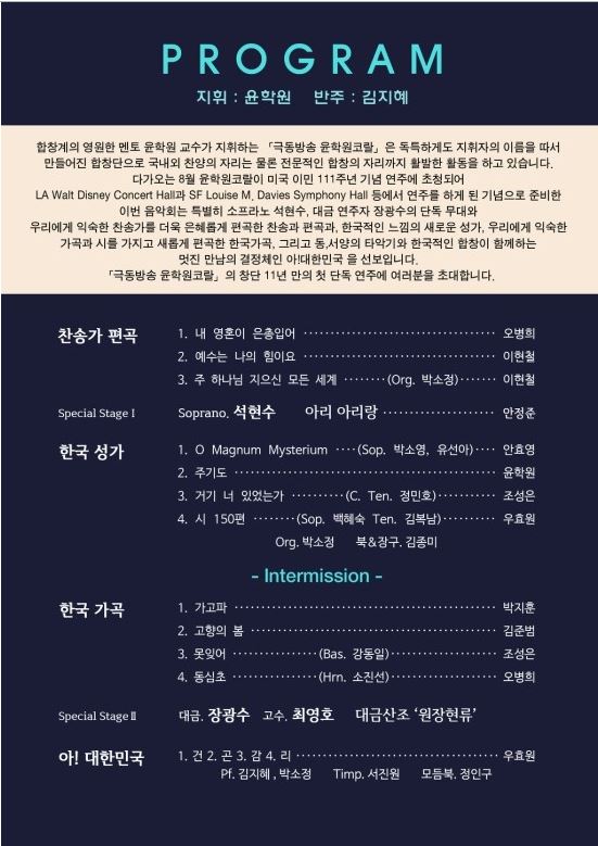 - 솔리스트 : 박소정( 오르간 ), 서진원( 팀파니 )