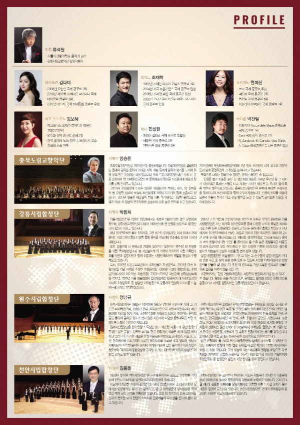 - 솔리스트 : 한예진( 소프라노 ), 김보혜( 메조 소프라노 ), 진성원( 테너 ), 박찬일( 바리톤 )